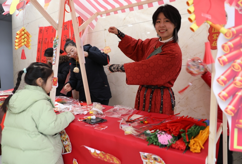 剪窗花、寫對聯(lián),是迎接新年必不可少的傳統(tǒng)習(xí)俗,承載了我們對新一年的美好期望。在傳統(tǒng)民俗區(qū),大家沉浸式體驗(yàn)這些傳統(tǒng)習(xí)俗,有的揮毫潑墨,“寫春送福”,有的剪紙寄情,剪出各種各樣象征生肖、團(tuán)圓、吉祥的窗花,不一會兒,一幅幅滿載新年祝福的春聯(lián),一張張年味濃濃的窗花,就展現(xiàn)在大家面前。