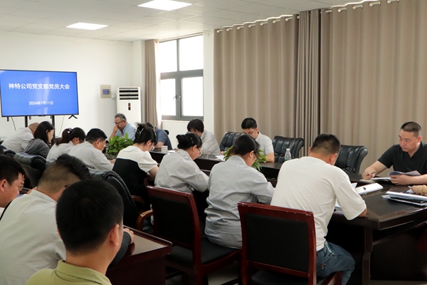 7月11日上午,神特公司黨支部召開黨員大會,公司全體黨員參加會議,討論和表決王勇等8名預備黨員轉正事項。會議由公司黨支部書記嚴成主持。