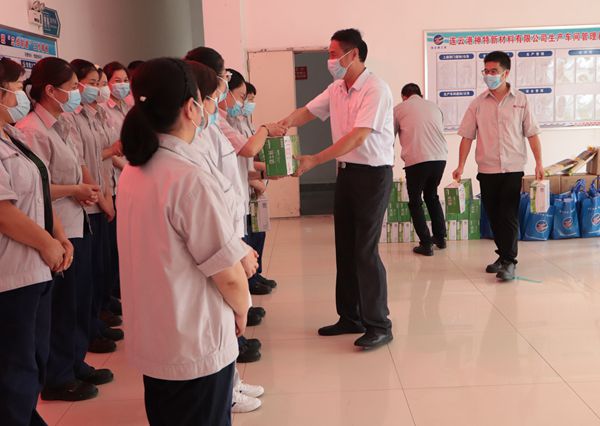 陳總向高溫下堅守崗位的一線職工進行慰問,細心叮囑要認真做好防暑降溫和疫情防控工作,并送上綠豆、大米等防暑降溫慰問品,為在炎炎夏日堅守一線的職工送來一份清涼,帶來一片關懷。(神特宣)