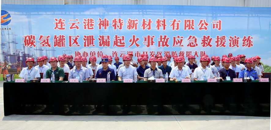 演練活動(dòng)于上午10點(diǎn)準(zhǔn)時(shí)拉開(kāi)序幕。所有參演人員均為生產(chǎn)一線員工,分為4組,即應(yīng)急搶險(xiǎn)組、滅火救援組、警戒疏散組和醫(yī)療救護(hù)組,分別承擔(dān)著搶險(xiǎn)維修、消防滅火、警戒疏散和醫(yī)療救護(hù)工作。根據(jù)方案進(jìn)行現(xiàn)場(chǎng)實(shí)景模擬,在碳?xì)涔迏^(qū)發(fā)生泄漏后,應(yīng)急搶險(xiǎn)組根據(jù)預(yù)案二級(jí)響應(yīng)程序和要求,迅速帶著工具趕至現(xiàn)場(chǎng)進(jìn)行搶修;警戒疏散組拉起警戒線,揮動(dòng)警示旗疏散人員并撥打119電話報(bào)警;滅火救援組火速趕至救援現(xiàn)場(chǎng)使用半固定式泡沫滅火車(chē)、中高倍滅火車(chē)迅速形成第二滅火力量,對(duì)罐體進(jìn)行降溫,使用泡沫液對(duì)流淌火滅火;醫(yī)療救護(hù)組攜帶救護(hù)器材趕至現(xiàn)場(chǎng),對(duì)傷員進(jìn)行簡(jiǎn)單處理后,將傷員抬離至安全地帶,并進(jìn)行包扎救護(hù)后送醫(yī);開(kāi)發(fā)區(qū)消防隊(duì)員接警趕至事故現(xiàn)場(chǎng)后,利用水炮車(chē)控制住火情。經(jīng)過(guò)緊急堵漏搶修,險(xiǎn)情排除,安全應(yīng)急演練于上午10點(diǎn)30分結(jié)束。