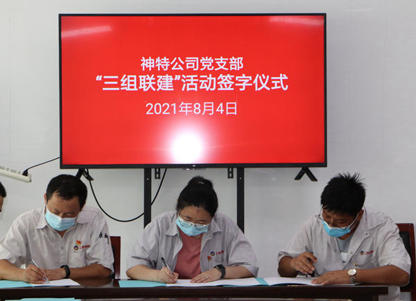 84日上午,公司舉行“三組聯建”活動簽字儀式,黨小組、生產班組、工會小組的組長參加活動。活動由公司黨支部副書記袁忠主持。