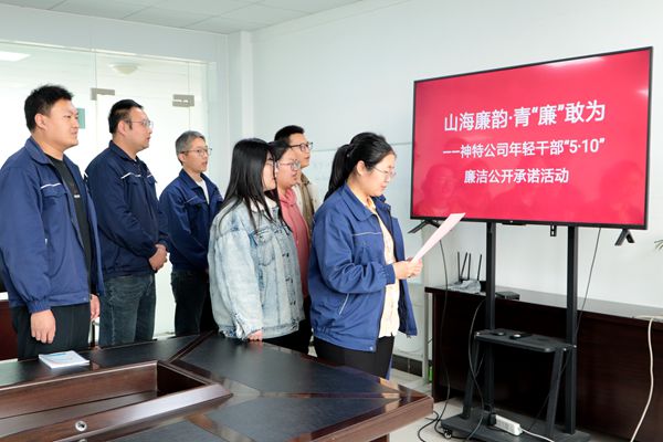 為了積極響應集團紀委號召,扎實開展年輕干部“廉政教育月”活動,5月10日下午,公司組織9名“90”后年輕干部開展廉潔承諾活動活動中,年輕干部進行廉潔從業宣誓、簽訂廉潔承諾書,公司向年輕干部家屬發放家庭助廉倡議書,將廉潔承諾化在筆尖、落到實處,筑牢廉潔從業“防火墻”。(神特宣)