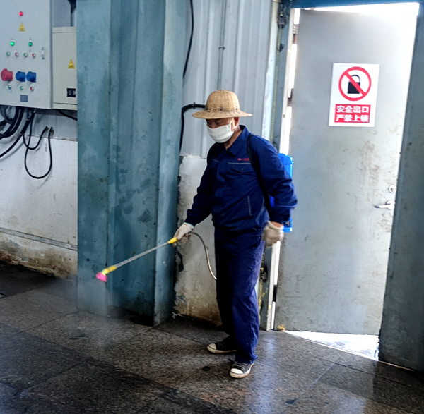 丁師傅了解到這個信息后,利用休息時間,主動請示領導,背著沉重的藥桶,裹著厚衣服,為單位綠化帶、車間內部和包裝區域進行打藥,沿途受到一線員工的熱情歡迎,甚至“主動”邀請老丁到他們的工作區域“轉轉”,幫忙打藥,員工苦蚊子久矣。老丁戴的草帽是以前負責打藥的葛師傅的,所以大家笑著說“老葛回來了”。一個上午,老丁就打了三桶藥,大家也叮囑他,好好洗個澡,防止皮膚受到藥品傷害。