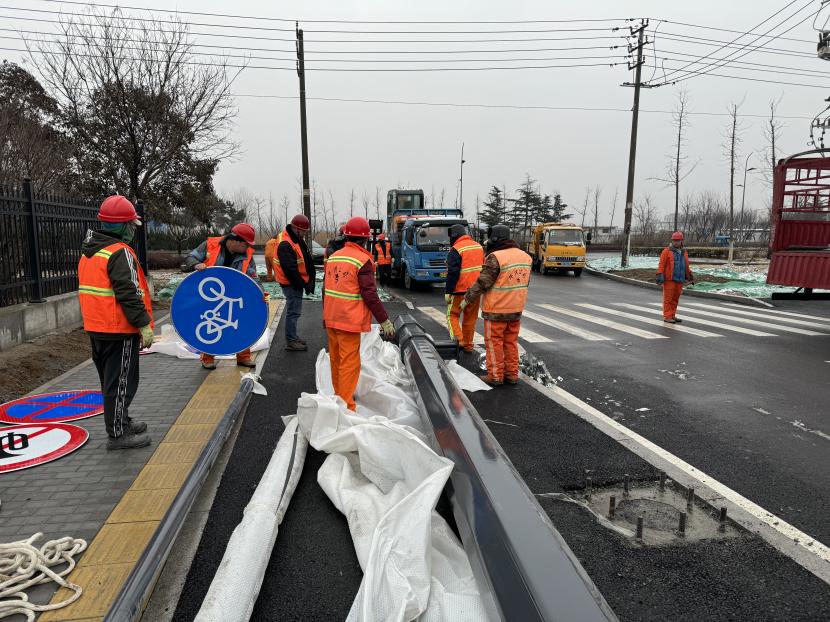 立足優(yōu)質(zhì)服務(wù),確保維護管養(yǎng)及時高效。盛達市政分公司根據(jù)公司上級交辦的重點工作,以及一季度觀摩會活動線路保障等工作,積極完善轄區(qū)主次干道、公園、廣場的市政設(shè)施,認真履職盡責,保障市政設(shè)施完善,做好下水管網(wǎng)運轉(zhuǎn)通暢,巡查人員冒雨堅持道路巡查,對轄區(qū)下水管網(wǎng)進行摸底排查,及時清理疏通堵點,對積水嚴重路段設(shè)立警示標志,并利用抽水泵等重型設(shè)備疏導(dǎo)積水,確保轄區(qū)不出現(xiàn)大面積積水,保障了轄區(qū)人民群眾的出行安全,一季度順利完成轄區(qū)井篦、井蓋更換安裝合計約200套;另外,友誼路交黃海大道、興業(yè)路交黃海大道、平山路交黃海大道雨水管網(wǎng)改造工程正在有序開展中。