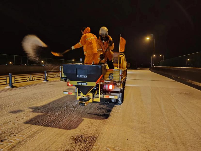 受寒潮影響,2月20日下午,港城普降“冰雪+冰?!保顿Y公司第一時(shí)間啟動(dòng)惡劣天氣應(yīng)急處置預(yù)案,道路保潔、市政養(yǎng)護(hù)、后勤保障等戰(zhàn)線的干部職工以雪為令,在重點(diǎn)區(qū)域、重點(diǎn)路段、坡道、橋梁、涵洞等結(jié)冰路段進(jìn)行撒鹽融雪融冰作業(yè),全力以赴除冰雪、防事故、護(hù)平安,為市民群眾出行一路“護(hù)航”。