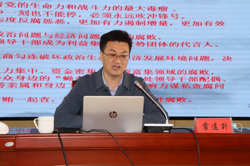 本次廉政教育報告會邀請了市紀委監委第八監督檢查室主任霍連升同志專題授課,霍連升主任在題為《以案明紀、遵規守法,做國有企業的廉潔從業表率》的報告中,圍繞分析當前形勢,明確反腐任務;剖析典型案例,汲取深刻教訓;增強法紀觀念嚴守廉潔底線等三方面進行授課,深入闡述了習近平總書記關于黨風廉政建設和反腐敗斗爭重要論述,重點解讀了新時代反腐敗斗爭形勢,結合近年來本地查處的違法違紀典型案件,為全體黨員干部上了一堂主題鮮明、內容豐富、成效顯著的黨風廉政教育課。