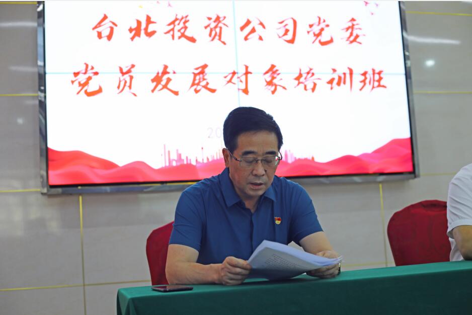 為強化黨員發展對象教育培養,提升發展黨員質量,近日,投資公司在廉政教育活動室開展黨員發展對象培訓班。按照要求,公司黨委安排了臺北形勢任務宣講、黨內法律法規解讀、《中國共產黨章程》以及百年黨史等培訓內容。黨委副書記楊善革作開班動員講話。