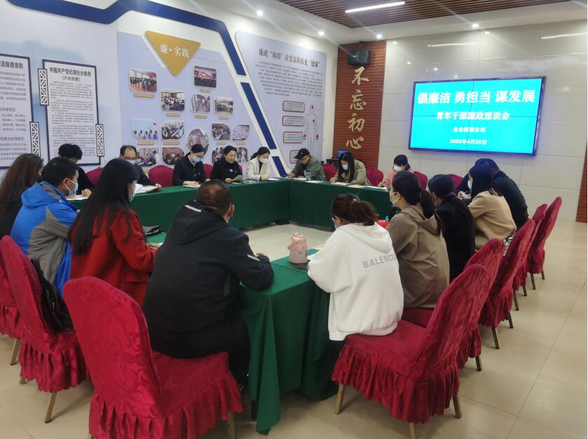 在第103個(gè)“五四”青年節(jié)來臨之際,4月28日,公司團(tuán)委聯(lián)合紀(jì)委組織召開“倡廉潔、勇?lián)?dāng)、謀發(fā)展”青年員工廉政座談會(huì)。面對(duì)企業(yè)發(fā)展的巨大壓力,需要青年員工在工作中發(fā)揮“生力軍”作用,勇?lián)厝危瑸槠髽I(yè)發(fā)展護(hù)航亮劍,同時(shí)青年職工也要筑牢拒腐防變的思想防線,扣好廉潔做事的“第一粒扣子”。