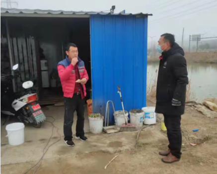 共產黨員趙紹慶和朱文金在疫情期間,除了參觀社區志愿活動,進行卡口值勤和衛生消毒外,還每天往返于公司各閑置土地之間。他們頂著寒風,穿梭于池塘地頭間,向即將清退的養殖戶宣傳公司和清退政策,幫助人手不夠的養殖戶對養殖塘附近進行全面環境消殺,幫助即將退出離開的養殖戶清理各類物資,幫助他們把需要帶走的物品整理歸類,以便盡早搬走,騰出池塘方便開發區征收。