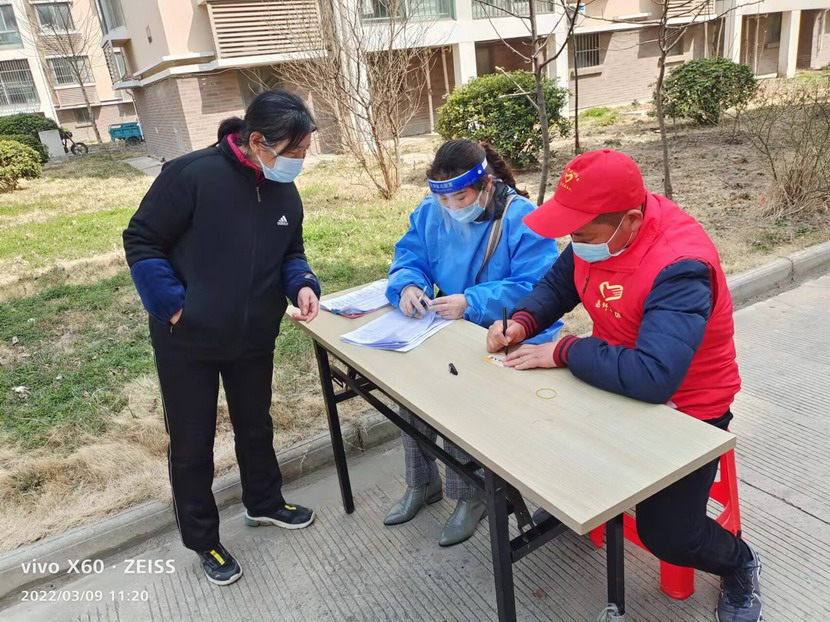 ? ? ?▲海州公司黨支部副書記蘇玲與職工邱榮斌等進(jìn)行核酸檢測登記