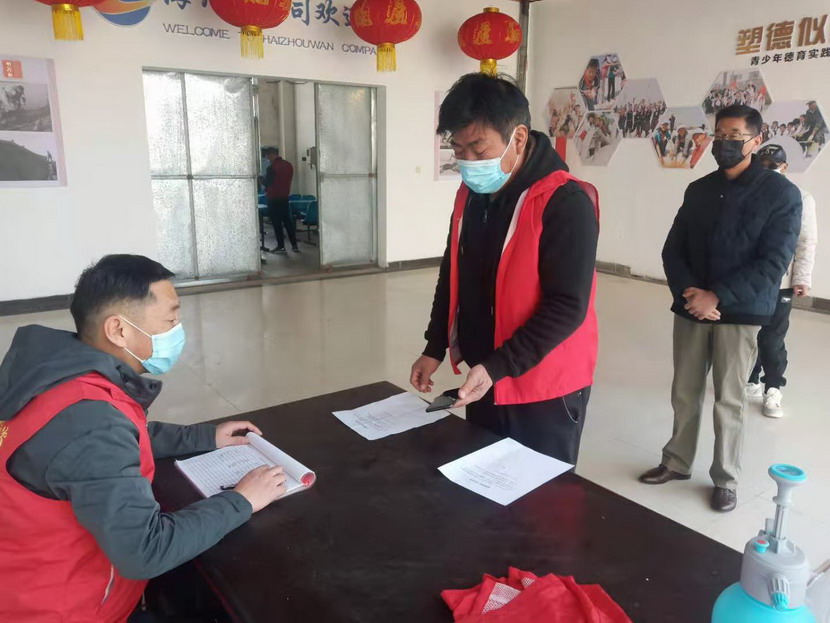 設置黨員先鋒崗,筑牢防疫堡壘。在這疫情防控緊要關頭,海州灣黨支部廣大黨員挺身上前、沖鋒在前,全力以赴、嚴防死守。分別在海濱、先鋒、公司辦公區以及兩個鈣液發放點分別設置黨員先鋒崗,負責來訪人員體溫登記,查看核酸檢測證明、蘇康碼以及行程碼,并宣傳疫情防控政策、防控措施和科普知識,堅持把黨旗樹起來、黨員身份亮出來,自覺投入到疫情防控各項工作中,全面落實聯防聯控措施,構筑群防群控的嚴密防線,堅決打贏這場疫情防控阻擊戰。