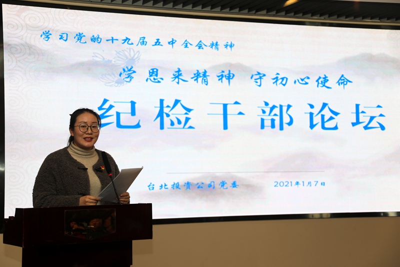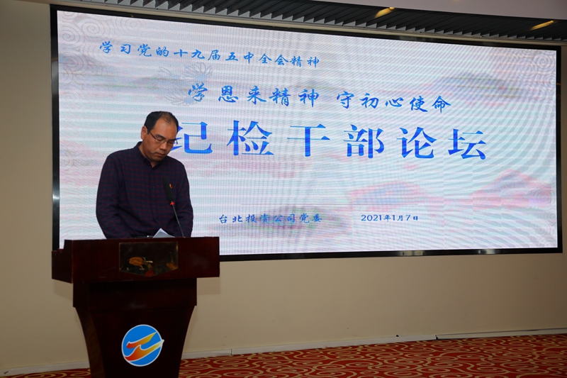 “感受偉人風范,踐行初心使命……”從臺北投資公司十樓會議室里傳來鏗鏘有力的演講聲。為深入推進“學恩來精神、守初心使命”專題教育活動,鍛造忠誠干凈擔當的紀檢干部隊伍,17日下午,公司舉辦紀檢干部專題大講堂公司領導班子成員,各單位、部門中層副職以上管理人員參加了活動。
