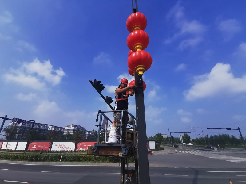 花果山大道上,翔立公司800余盞燈籠安裝工程已經全部施工完畢,正在進行最后的全面檢修工作。