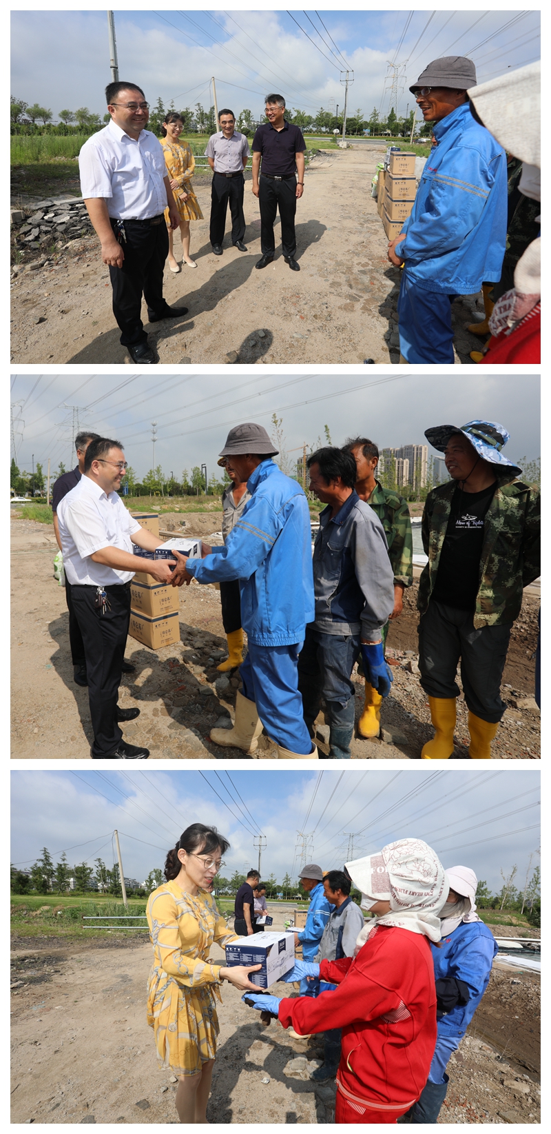 “大家辛苦了!天氣炎熱,注意防暑”“要避開高溫時(shí)段作業(yè),靈活調(diào)增上班時(shí)間,身體才是第一位”楊龍董事長(zhǎng)和汪群書記將防暑消暑物品送到生產(chǎn)現(xiàn)場(chǎng)每一位職工手里,同時(shí)關(guān)切叮囑大家注意身體,做好防暑工作。