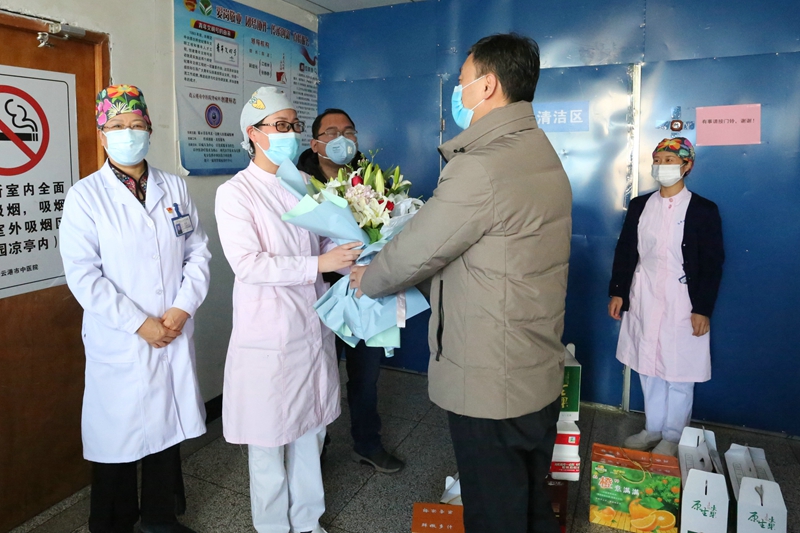 為慰問公司職工家庭中的“戰疫天使”,并表達對戰“疫”一線醫護工作者們的敬意,2月27日上午,黨委副書記、工會主席吳衛平代表投資公司赴市中醫院慰問一線醫護工作者。市中醫院黨委書記李建軍、院長李秀連、黨委副書記楊爽等親自接待了公司慰問人員一行。