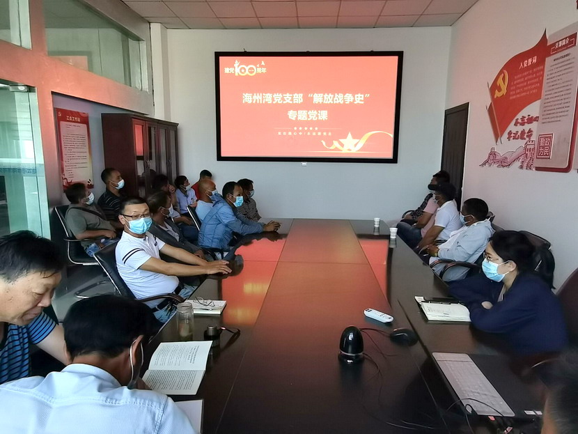 為扎實推進黨史學習教育深入開展,強化學習實效,8月25日下午,海州灣黨支部組織全體黨員和入黨積極分子上了一堂生動的黨史學習教育專題黨課。