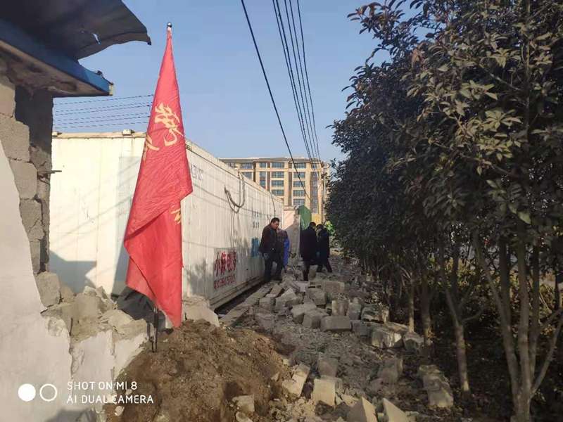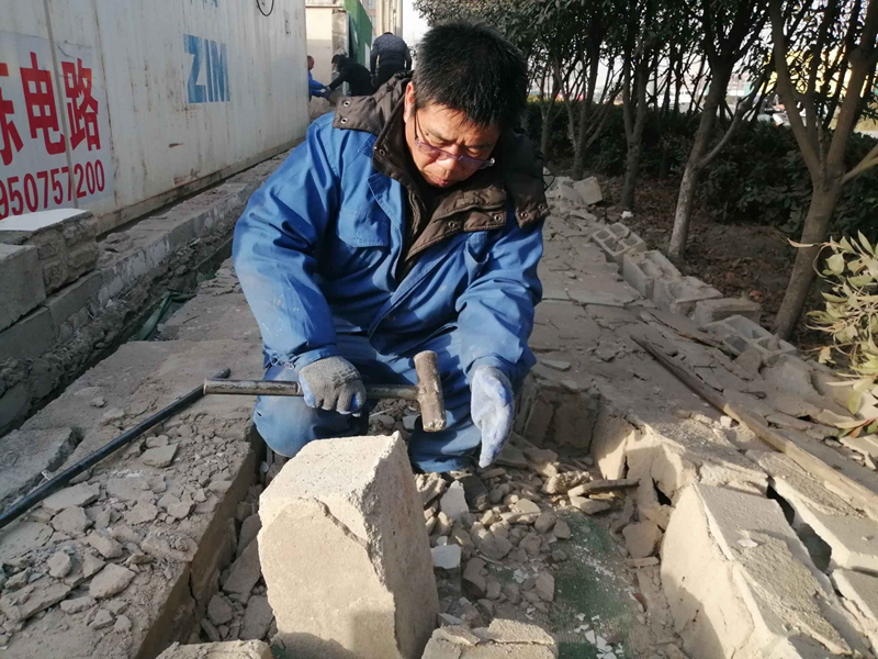 據(jù)悉,該處墻頭整體倒塌,大多數(shù)磚塊沒有受到損壞。志愿者們一塊一塊的挑選、清理、搬運,將可以回收利用的磚塊整理好,用于墻頭的修葺。水泥、沙的配比不太熟悉,天氣寒冷如何做好防凍,怎么辦?臨達公司的退休老黨員主動站了出來,為圍墻修葺工作做指導(dǎo),提供幫助。經(jīng)過兩天的奮戰(zhàn),將倒塌的墻頭修葺好,并拉好了美化綠布。