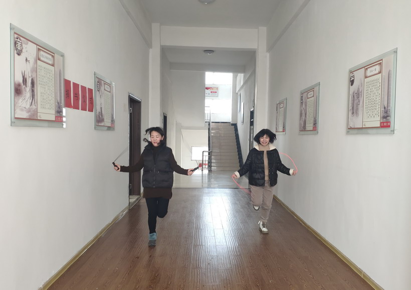 跳繩比賽兩人一組,用最短的時間跳到終點者勝利。只見他們用一次次律動的跳躍動作,挑戰(zhàn)著自己的力量和耐力,盡情“繩”采飛揚,跳出精彩。