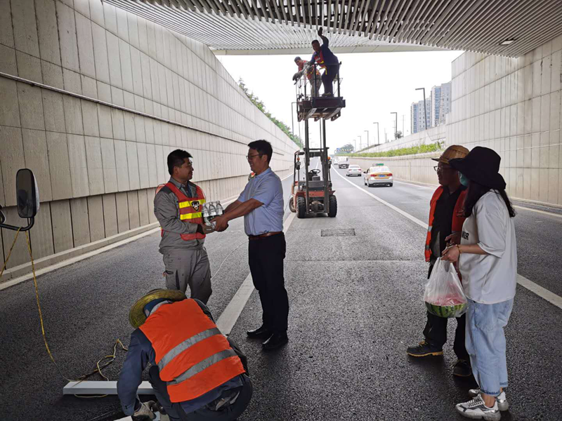 529日,隨著季節變化,戶外氣溫不斷攀升,給奮斗在露天施工現場的翔立“鐵軍”們帶來諸多不便,太陽暴曬、酷熱難耐、體能消耗很大。為了切實關愛職工,傳遞公司對員工無微不至的體恤關懷,翔立分公司工會第一時間組織送清涼到一線活動,購買了防暑降溫飲品、礦泉水、西瓜等,驅車來到花果山大道立交橋維修工程現場,將飲品及時發放到每一個施工人員手中。通過送清涼活動的開展表達了分公司關愛職工的情懷,也給炎熱的天氣帶來了一絲愜意,一縷清涼。