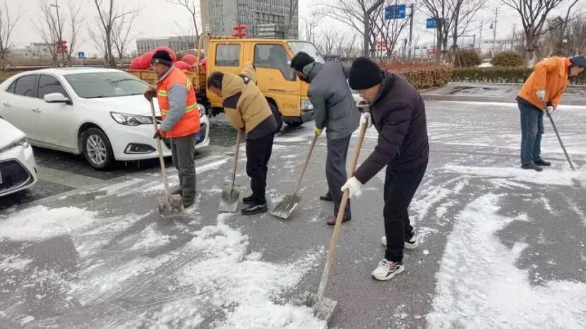 近日,隨著雨雪天氣的頻繁造訪,翔立分公司積極響應,全員行動,積極投入到保潔分公司創智綠園的除雪除冰工作中。在嚴寒的冬季,“鐵軍戰士”們不畏艱險,以實際行動保障園區內的安全和整潔。