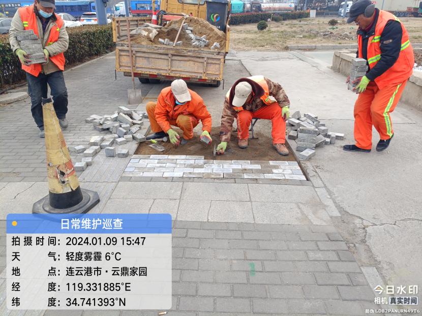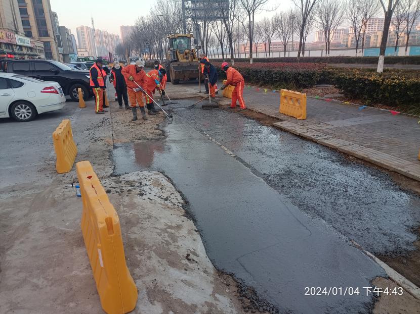 由于去年年底轄區(qū)平山路進(jìn)行電路改造,對(duì)道路路面及人行道道磚造成破壞,給行人帶來通行不便和安全隱患,為此,盛達(dá)市政公司為及時(shí)恢復(fù)行人安全出行環(huán)境,對(duì)平山路開展整治工作。整治工作中,該公司根據(jù)工作實(shí)際情況,科學(xué)安排,精心部署,始終嚴(yán)把質(zhì)量關(guān),和天氣比賽,與時(shí)間賽跑,在供電部門完成電路改造后,第一時(shí)間進(jìn)行破損路面清除、廢舊道磚拆除、布設(shè)圍擋等清障保通工作,于今年一月初進(jìn)行測(cè)量放線、混凝土澆筑、道磚鋪設(shè)等工作,通過養(yǎng)護(hù)人員20余天的有序作業(yè),順利完成整治工作,并做好灑水覆蓋養(yǎng)護(hù)。