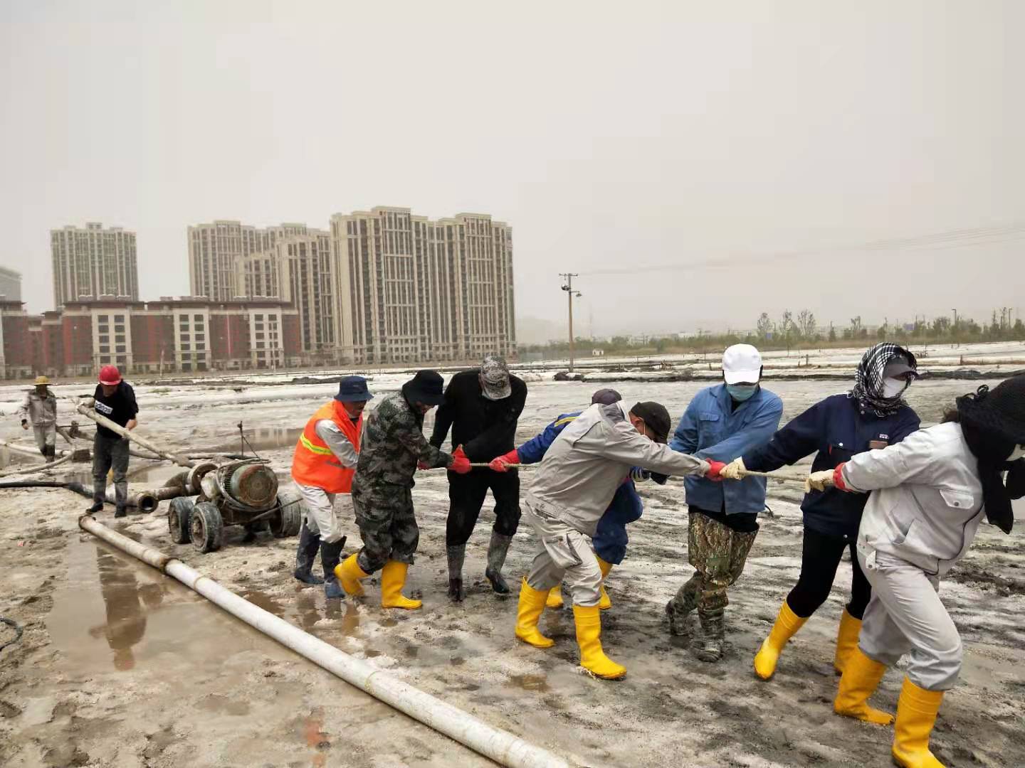 58日上午,海州灣公司在扒鹽現(xiàn)場,利用搶修扒鹽機械的間隙,組織當(dāng)班職工迅速傳達了投資公司“大干紅五月,再創(chuàng)新佳績”動員大會會議精神,積極宣貫投資公司政策和鹽鈣產(chǎn)業(yè)當(dāng)前面臨的嚴峻形勢,并制定公司大干紅五月小指標(biāo)勞動競賽方案,開展職工勞動技能大比武,明確公司五月份經(jīng)濟指標(biāo),動員全員要團結(jié)奮進,樹立榮辱與共的集體榮譽感,進一步凝聚奮進力量,提升干群士氣,全力沖刺五月份扒鹽10000噸、排鹵60000方、實現(xiàn)營業(yè)收入260萬元的經(jīng)濟目標(biāo),掀起大干紅五月的熱潮,營造齊心協(xié)力、大干快干的良好局面。