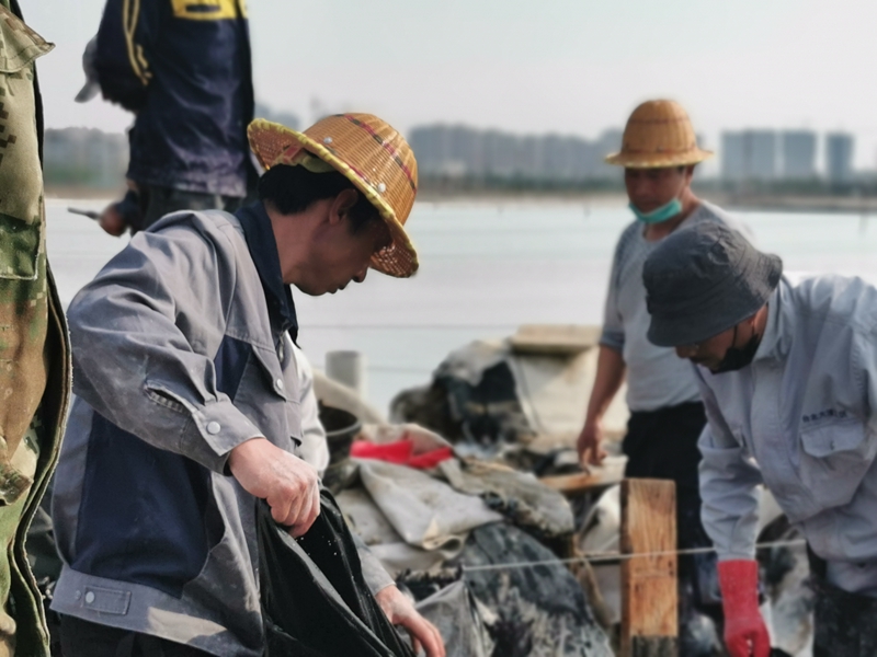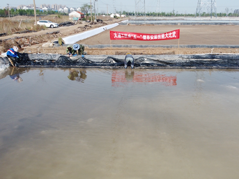 “比武”現場一片忙碌,各位“比武勇士”都是鹽灘的行家里手,共28名,分成4組,每組7人,在規定兩小時內完成塑布安裝。“比武”過程中,每組成員通力合作、一絲不茍,從嚴控制好每一道安裝工序和環節,拼速度、比規范,確保安裝的塑布在使用中得心應手。