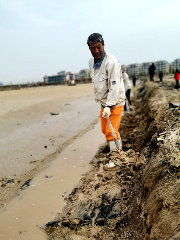 打虎親兄弟,上陣父子兵。海州灣公司得知兄弟單位求助后,18個(gè)生產(chǎn)單元職工連帶3名生產(chǎn)班組長(zhǎng)全家總動(dòng)員,手拿鐵掀,腳登水靴,齊齊上陣。