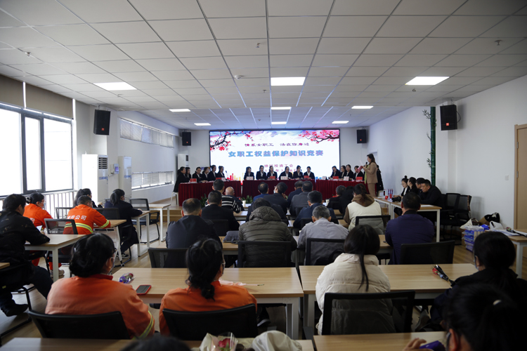 3月8日,投資公司工會在環(huán)衛(wèi)運(yùn)營管理中以“情系女職工 法在你身邊”為主題,舉辦 “女職工權(quán)益保護(hù)”知識競賽。投資公司黨委書記、董事長、總經(jīng)理莊清付,黨委副書記、工會主席劉剛,副總經(jīng)理?xiàng)钍孛鳎鲉挝稽h政工、工會女工委成員、悅升機(jī)關(guān)全體員工觀摩比賽。