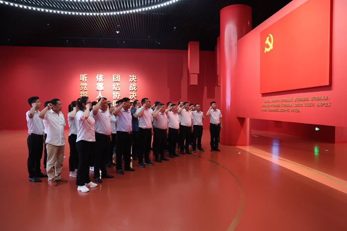 ? ? ? ?走進淮海戰(zhàn)役紀念館,講解員從淮海戰(zhàn)役“兩種前途 命運決戰(zhàn)”、“逐鹿淮海 決戰(zhàn)決勝”、“人民戰(zhàn)爭 深厚偉力”、“革命英烈永垂不朽”四個部分,進行了聲情并茂的講述。館內(nèi)豐富的歷史文獻和珍貴資料充分展示了淮海戰(zhàn)役勝利的進程。通過近距離參觀,黨員們深刻感悟淮海戰(zhàn)役精神,一張張歷史照片、一件件珍貴文物、一個個歷史場景更讓黨員們感受到戰(zhàn)爭的殘酷、革命先烈的英勇,他們的光輝事跡和崇高品格深深的震撼著現(xiàn)場全體黨員。接著參與活動的全體人員進行了莊嚴的宣誓儀式,面對黨旗,舉起右拳,宣讀了入黨誓詞。字字千鈞,句句鏗鏘,宣誓著共產(chǎn)黨人堅定的理想信念。