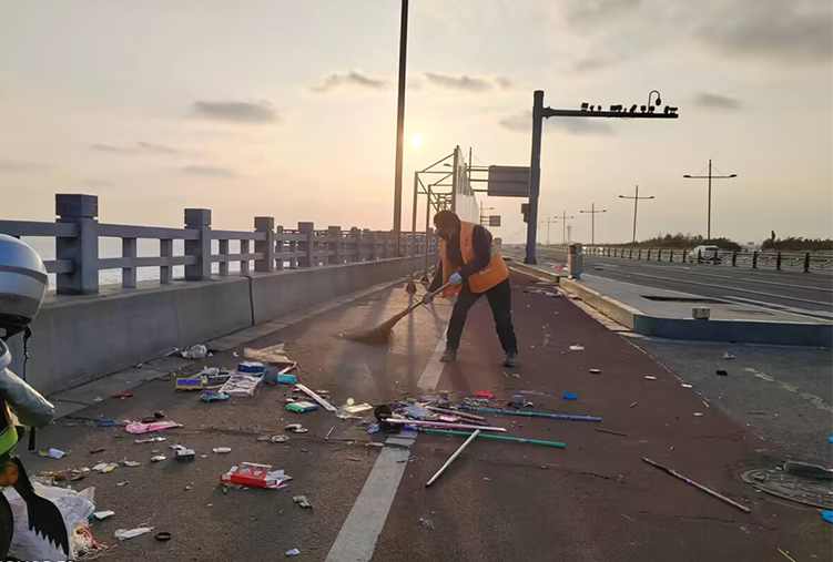 “六位一體”,加強機械作業力度。保潔分公司全面落實精細化管理工作制度,加大機械化清掃作業力度,每天持續出動18臺大清掃車、2臺高壓沖洗車拉網式上路作業。加強責任區域巡回檢查力度,清掃打包各類煙花垃圾50多包泥土30多處,轉運各類垃圾100多車清洗護欄長30多公里站臺30,以更高標準、更嚴要求推進節日期間保潔工作。