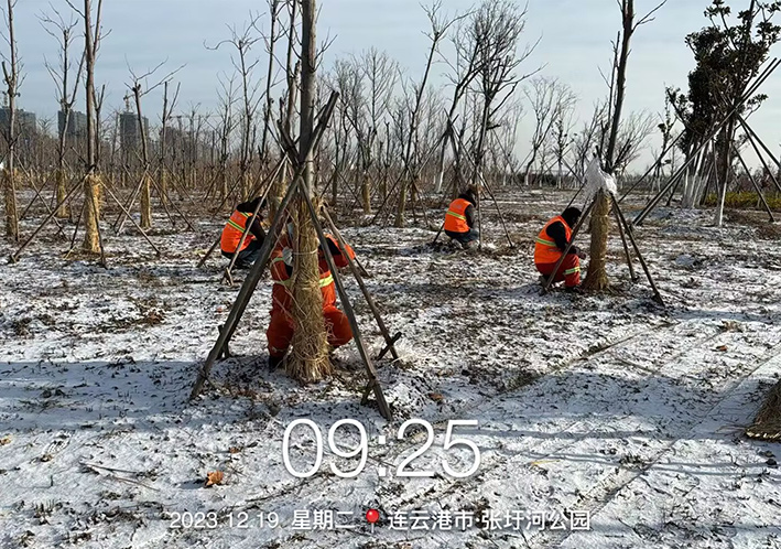 為確保園林樹木安全越冬,有效鞏固園林綠化成果,自11月中旬起,綠化分公司按照早動員、早部署、早實施的原則,在管養(yǎng)區(qū)域開展了冬季綠地管護提質專項活動,通過澆灌凍水、樹木修剪、根頸培土、包裹樹干等多項舉措有力保證了苗木安全過冬。