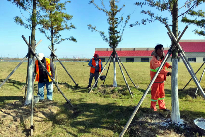 連日來,綠化分公司為為扎實做好冬季樹木養護工作,提高樹木的過冬、抗病和抗蟲能力,開展樹木涂白行動,為樹木披上“防寒衣”